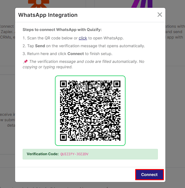 Step 2: Connect WhatsApp with Quizify